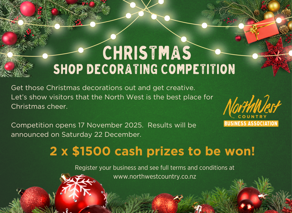 All members of North West Country are eligible to register to take part in the annual Christmas shop window decorating competition.